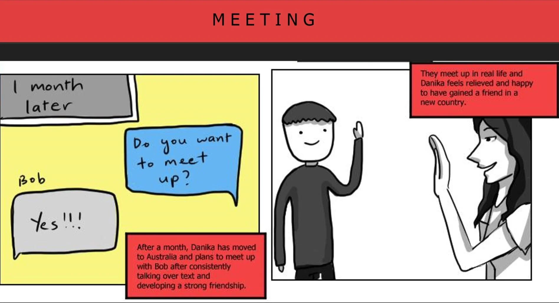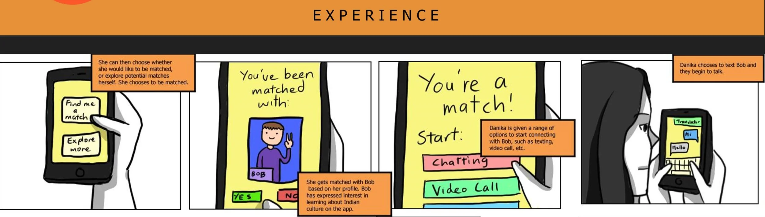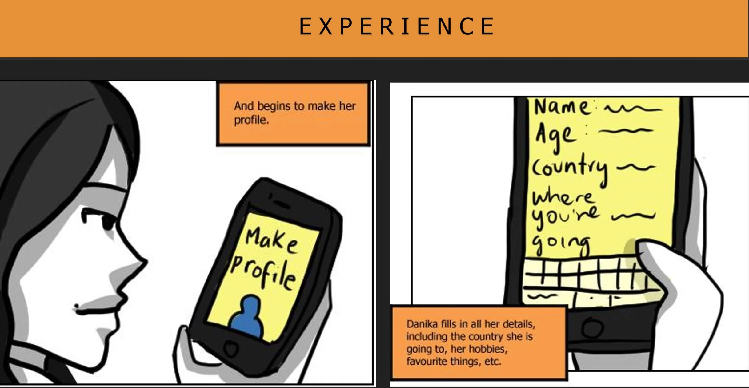 They can make a profile and list down interests/hobbies, and match with people who share common interests. Once they match, they can talk to each other and develop a relationship; get to know each other’s cultures etc and potentially meet up afterwards. Establishes familiarity and comfortability within new environment. It enables international people to form long lasting and substantial relationships with their peers even before moving to the new country by allowing them to interact before the meet. It provides a sense of belonging and allows user to feel comfortable and connected in a new environment .