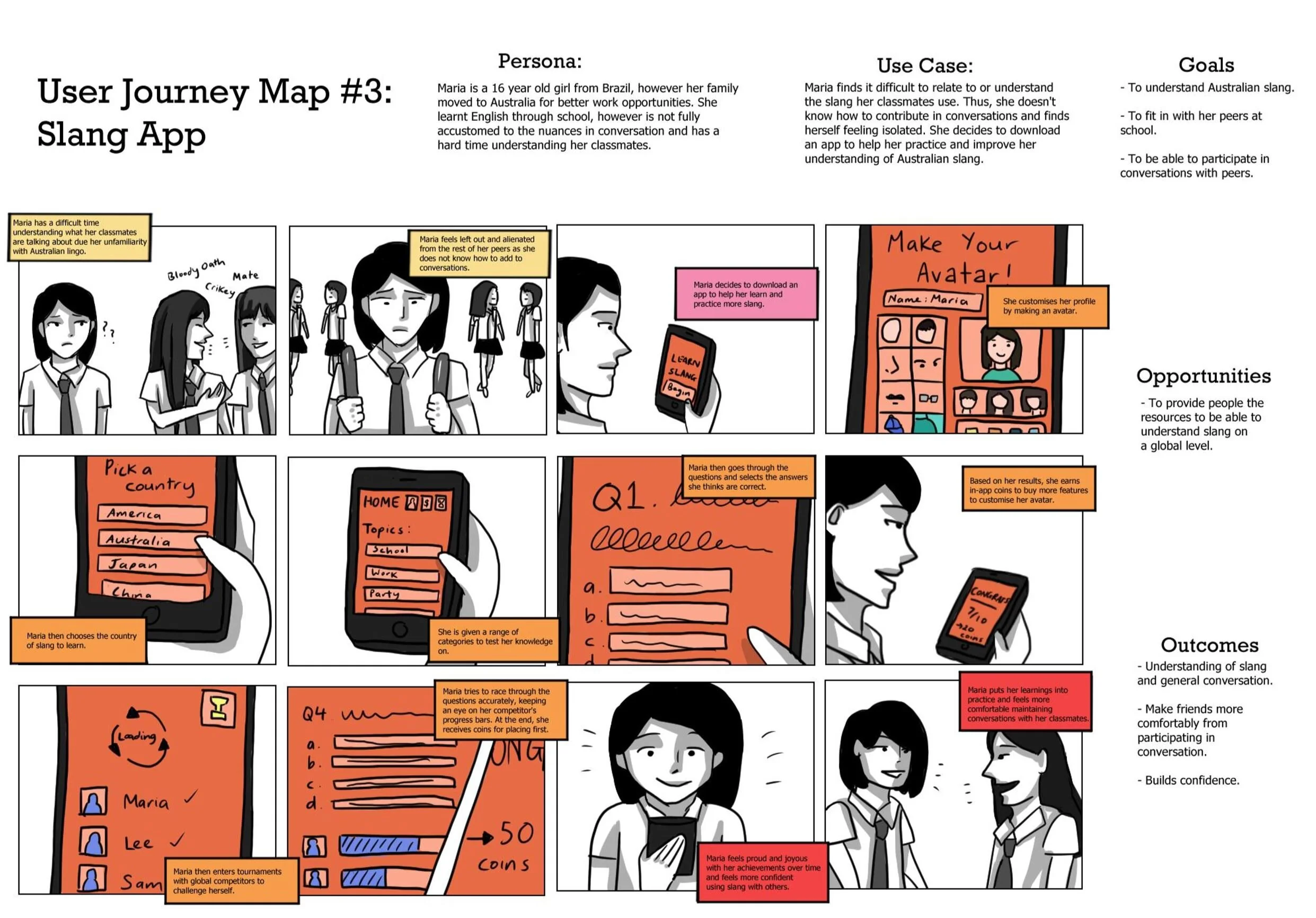You start by making an avatar, and through engaging in learning slang from a country of choice you can earn in-game coins which add up and allow you to buy items to decorate or add to your avatar. You can also compete with other users to race through all the slang for added fun and extra prizes. This app reduces communication barriers and reduces the fear of asking what things may mean by providing a safe platform where people can learn and understand slang from all around the world. Thus, this allows both parties to be able to understand one another and form long-lasting relationships.
