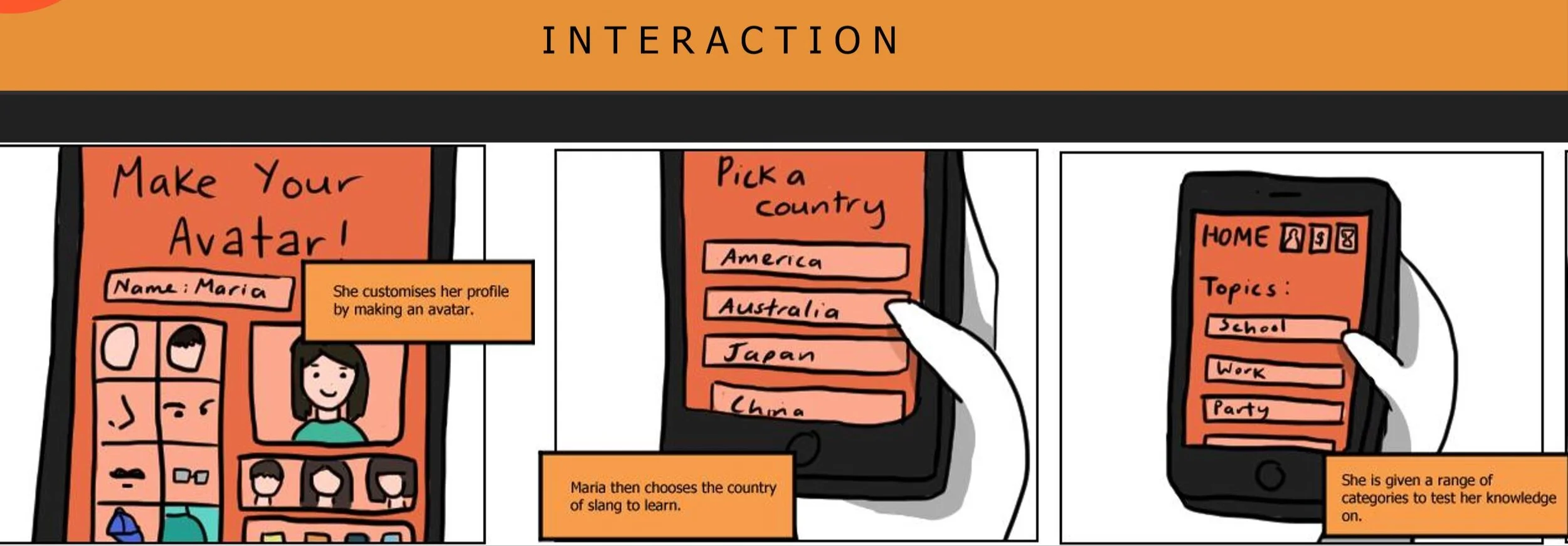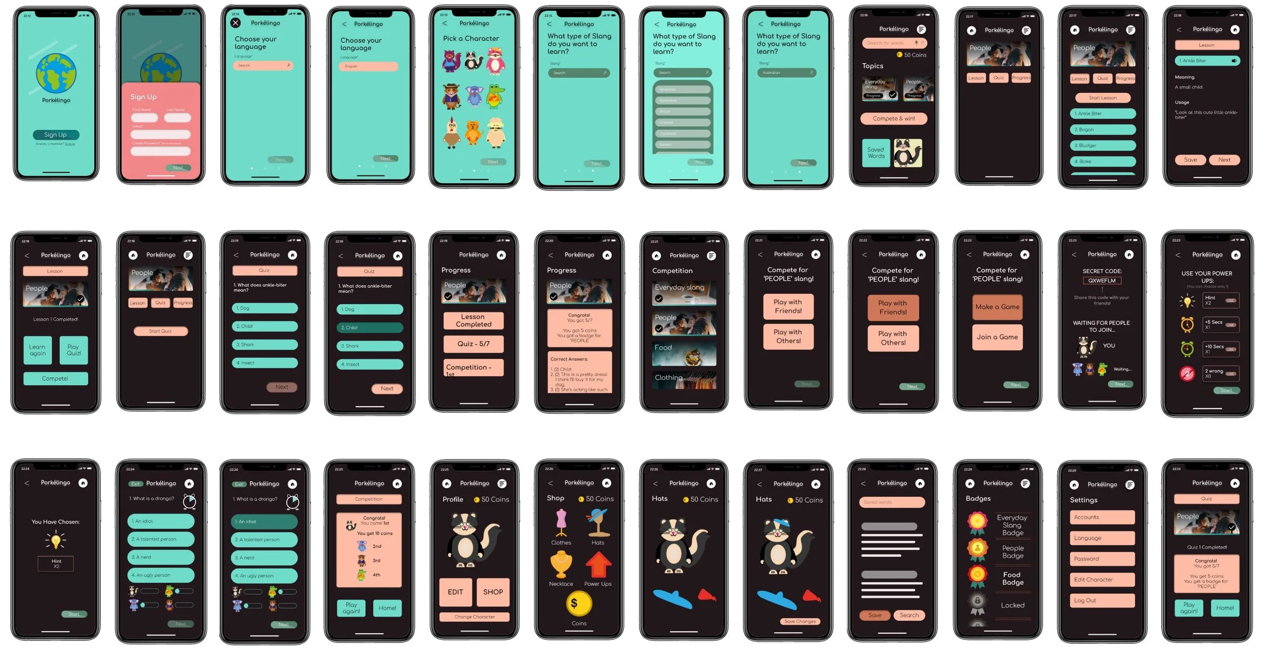 Our design solution Porkélingo is an app that allows you to learn new slang and it is specifically design for international people who have recently moved to a new country, or they might have been there for a while but are finding it difficult to social integrate with their peers. Our solution provides a fun and effective way to learn new slang as it provides tutorials, quizzes and competitions where u can practice the slang you have learnt with friends or other people around the world.