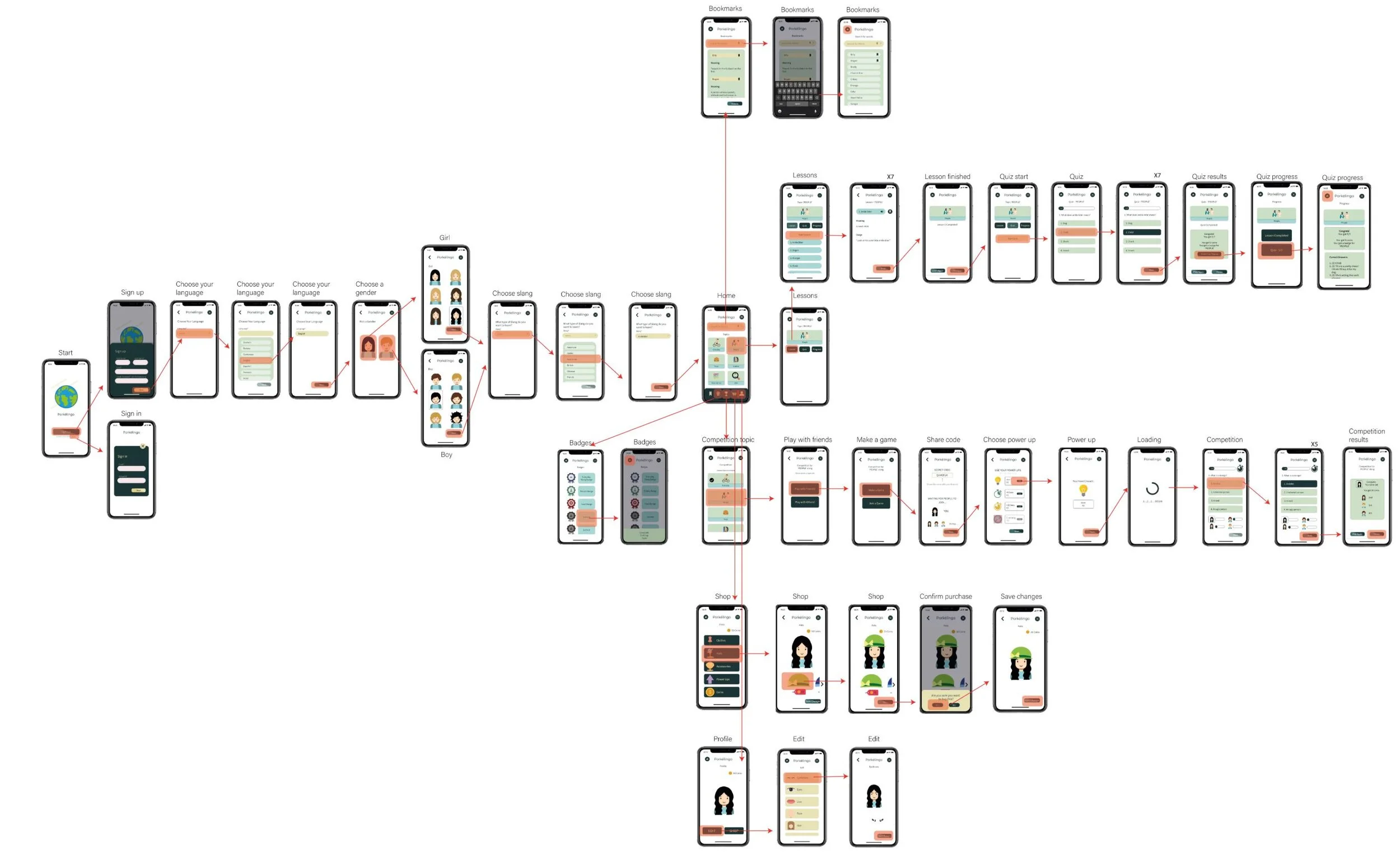 We then conducted another round of user testing with 12 people and received feedback which was that the symbol of shop and coin was confusing, the transition from the lesson to the quiz was not as smooth and they wanted to see their progress to see what question they were on. We also decided to rethink our UI design as there were various aspects that could be improved, such as consistency in colours and fonts. Despite our user testing and feedback from interviews, we failed to realise that our UI design was lacking visually. We decided to change our colour palette and font to a simpler one, to make the icons more consistent flat images, change the layout of the homepage and add a navigational bar.