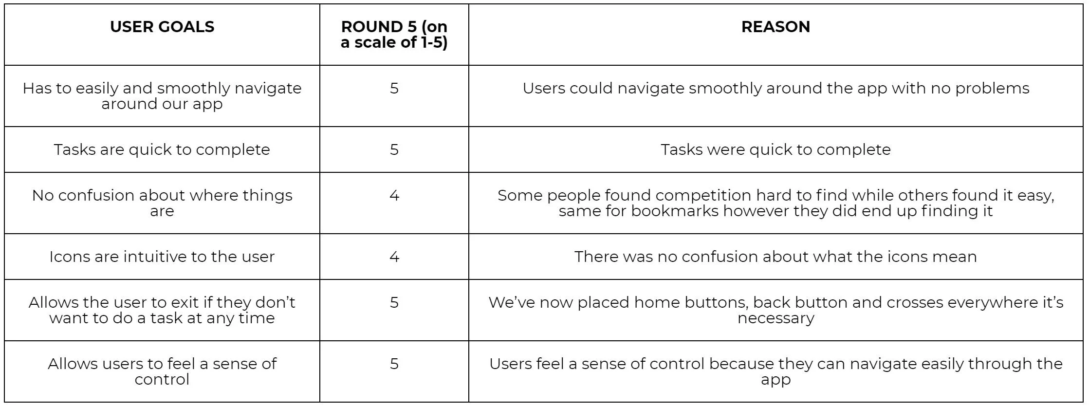 For our last round of user testing what we wanted to find out was if people liked our UI design and if they could still use it as efficiently as before with the changes we had made to the overall design of the app. We user tested 5 more people with the feedback being that all of the people we user tested found it super easy to navigate with them saying “The interface is very simple and easy to figure out, I like how some are just very complicated to use but yours is really easy,” and “ it’s simple to go through and navigate.”